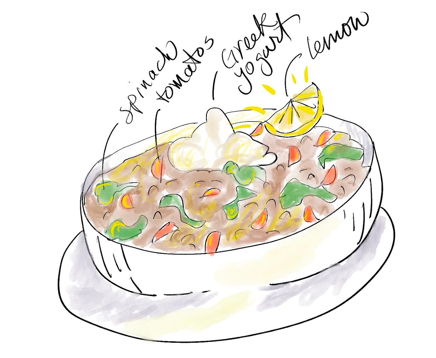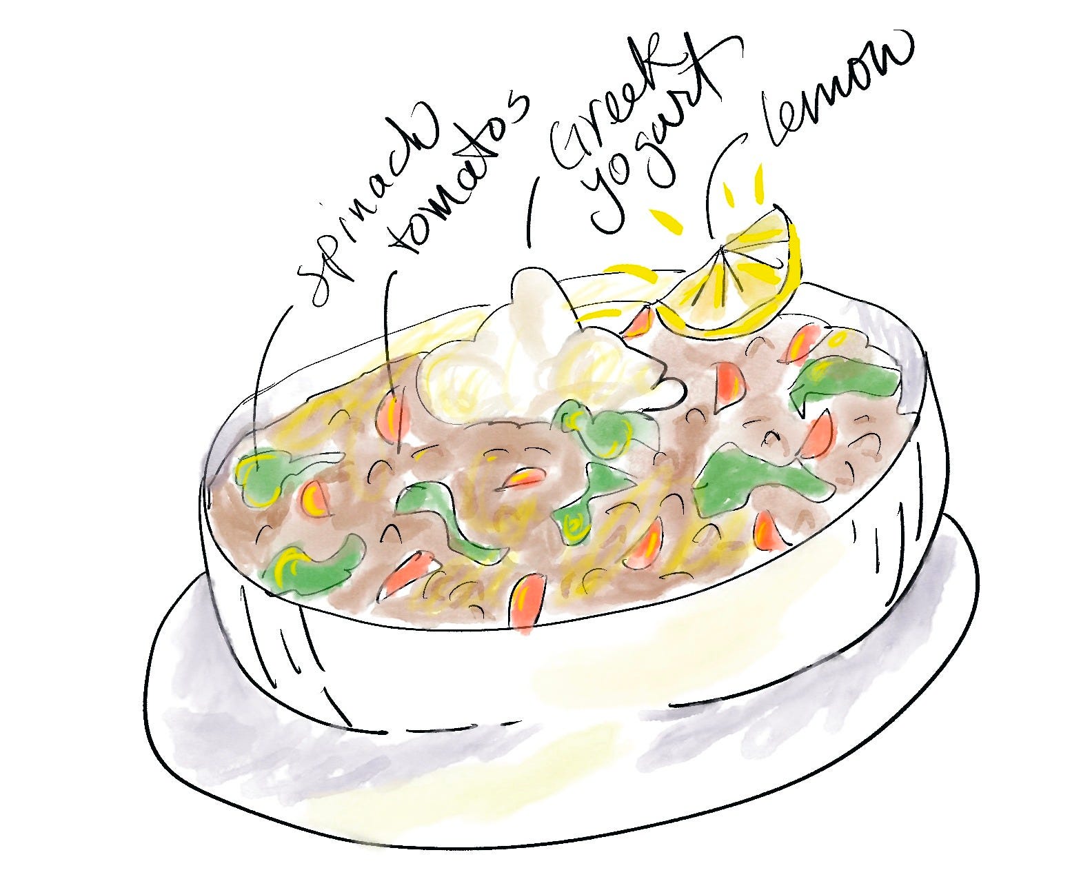 This healthy hearty soup is a light lemony meal in a bowl. Top it with greek yogurt and an extra slice of lemon to squeeze on top. (Apparently, our bodies cannot assimilate iron unless it is accompanied by something like lemon. Who knew?)