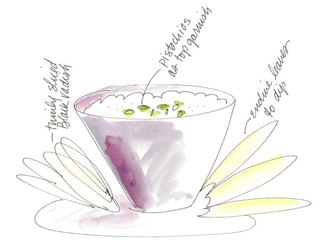 10 large Belgian endives (red or green) or very thinly sliced black radishes